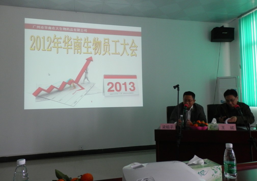 1月24日,華南生物2012年員工大會(huì)在辦公樓一樓會(huì)議室順利召開。王斌副總經(jīng)理主持了本次會(huì)議,梁昭平總經(jīng)理在會(huì)議上匯報(bào)了2012年度公司的經(jīng)營情況、主要亮點(diǎn)工作及主要完成工作內(nèi)容。梁總在現(xiàn)場(chǎng)講話中,感謝全體員工一年來對(duì)公司所做出的積極付出,充分肯定了華南生物員工在2012年里所取得的優(yōu)異成績,并為企業(yè)描繪發(fā)展藍(lán)圖,鼓勵(lì)大家共同努力,取得新的輝煌。在肯定上一年度工作成績的同時(shí),提出了企業(yè)在發(fā)展上存在的問題與改進(jìn)辦法,展望未來一年的方向和目標(biāo),對(duì)新一年寄予了熱切的期盼。