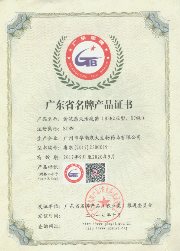 為貫徹落實(shí)廣東省委、省政府關(guān)于實(shí)施名牌帶動(dòng)戰(zhàn)略的重要部署,不斷提高廣東省農(nóng)產(chǎn)品質(zhì)量和市場(chǎng)競(jìng)爭(zhēng)力,根據(jù)《廣東省名牌帶動(dòng)戰(zhàn)略實(shí)施方案》和《廣東省名牌產(chǎn)品(農(nóng)業(yè)類)管理辦法》,經(jīng)廣東省南方名牌農(nóng)產(chǎn)品推進(jìn)中心組織專家評(píng)審和廣東省名牌產(chǎn)品(農(nóng)業(yè)類)推進(jìn)委員會(huì)審核,廣州市華南農(nóng)大生物藥品有限公司產(chǎn)品獲得“廣東省名牌產(chǎn)品”稱號(hào),此次共評(píng)出2017年廣東省名牌產(chǎn)品(農(nóng)業(yè)類)453個(gè),其中初評(píng)產(chǎn)品212個(gè),到期復(fù)審產(chǎn)品241個(gè)。