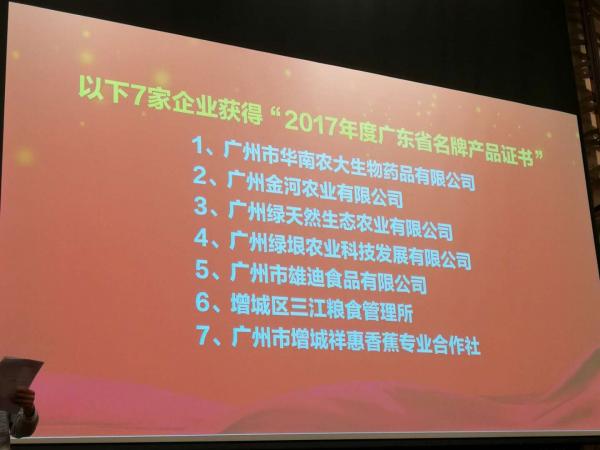為提高廣東省名牌產(chǎn)品(農(nóng)業(yè)類)的知名度,鼓勵(lì)農(nóng)業(yè)企業(yè)爭(zhēng)創(chuàng)名牌,做大做強(qiáng)我省農(nóng)業(yè)品牌,廣東省農(nóng)業(yè)廳決定在全省范圍內(nèi)對(duì)獲得2017年廣東省名牌產(chǎn)品(農(nóng)業(yè)類)的生產(chǎn)企業(yè)予以通報(bào)表彰,并頒發(fā)“廣東省名牌產(chǎn)品”證書。2018年1月25日,廣州市增城區(qū)農(nóng)業(yè)企業(yè)協(xié)會(huì)召開以“產(chǎn)融對(duì)接、助推農(nóng)企,不忘初心、服務(wù)會(huì)員”為主題的2017年年會(huì)暨省名牌產(chǎn)品頒牌儀式,廣州市增城區(qū)獲得“2017年度廣東省名牌產(chǎn)品”證書的企業(yè)有7家。