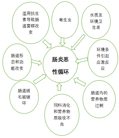 影響家禽腸道健康的傳染源有細菌和寄生蟲,水質,日糧中的應激因子(毒素)或其他因素等。大量抗生素的使用是導致家禽菌群失調,也是導致家禽患有壞死性腸炎和細菌性腸炎頻發。