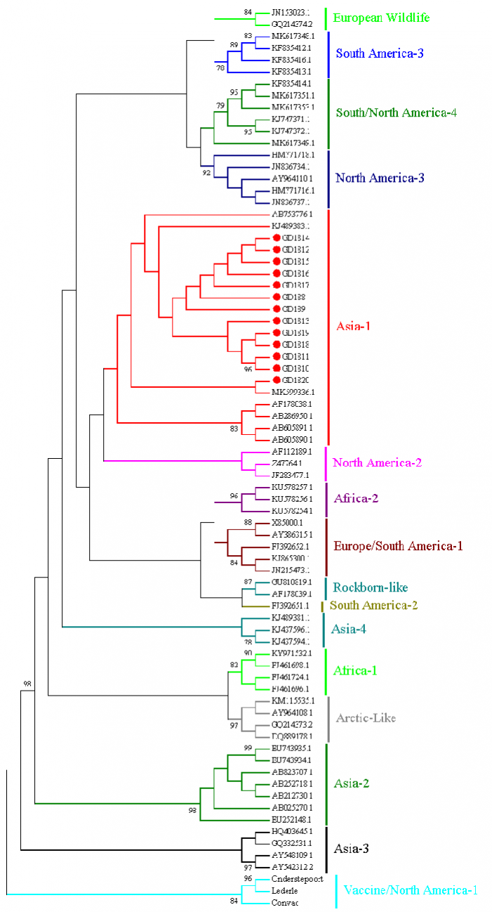 當(dāng)下國內(nèi)寵物疫苗市場由進(jìn)口產(chǎn)品所主導(dǎo),但是合法注冊的進(jìn)口產(chǎn)品并不能滿足國內(nèi)需求。大多數(shù)犬用CDV進(jìn)口疫苗所包含的都是America-1型毒株,而國內(nèi)主要流行的是Asia-1型毒株。從進(jìn)化譜系分析上來看疫苗株America-1所在的分支與流行的Asia-1型毒株距離較遠(yuǎn),基因差異可能導(dǎo)致中和表位的顯著變化,從而可能導(dǎo)致疫苗免疫失敗。此外國外有研究報(bào)道CDV的South America-3型毒株仍可使接種過包含America-1型毒株疫苗的犬發(fā)病。由此可見符合國情的疫苗是才是CD防控的需求所在。